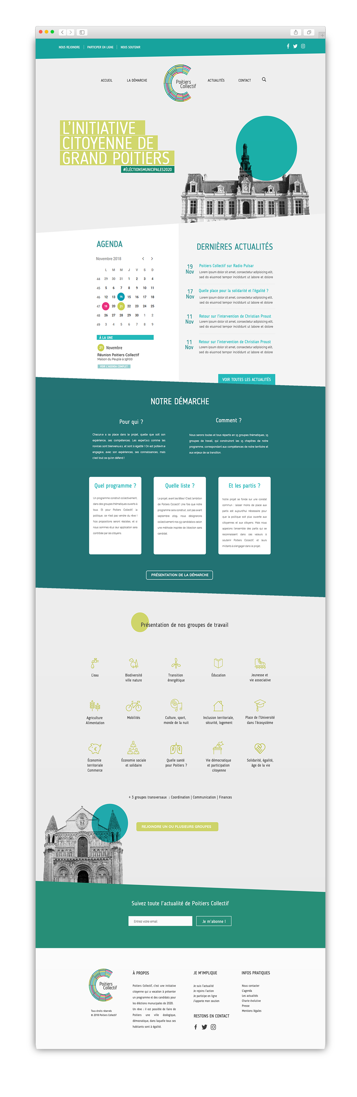 Poitiers Collectif est un mouvement citoyen, ouvert et démocratique qui s’engage dans la construction d’un programme alternatif pour les élections municipales de 2020. Porté par des valeurs citoyennes et écologiques, le collectif souhaite permettre à chacun la possibilité d’agir pour la vie politique locale.